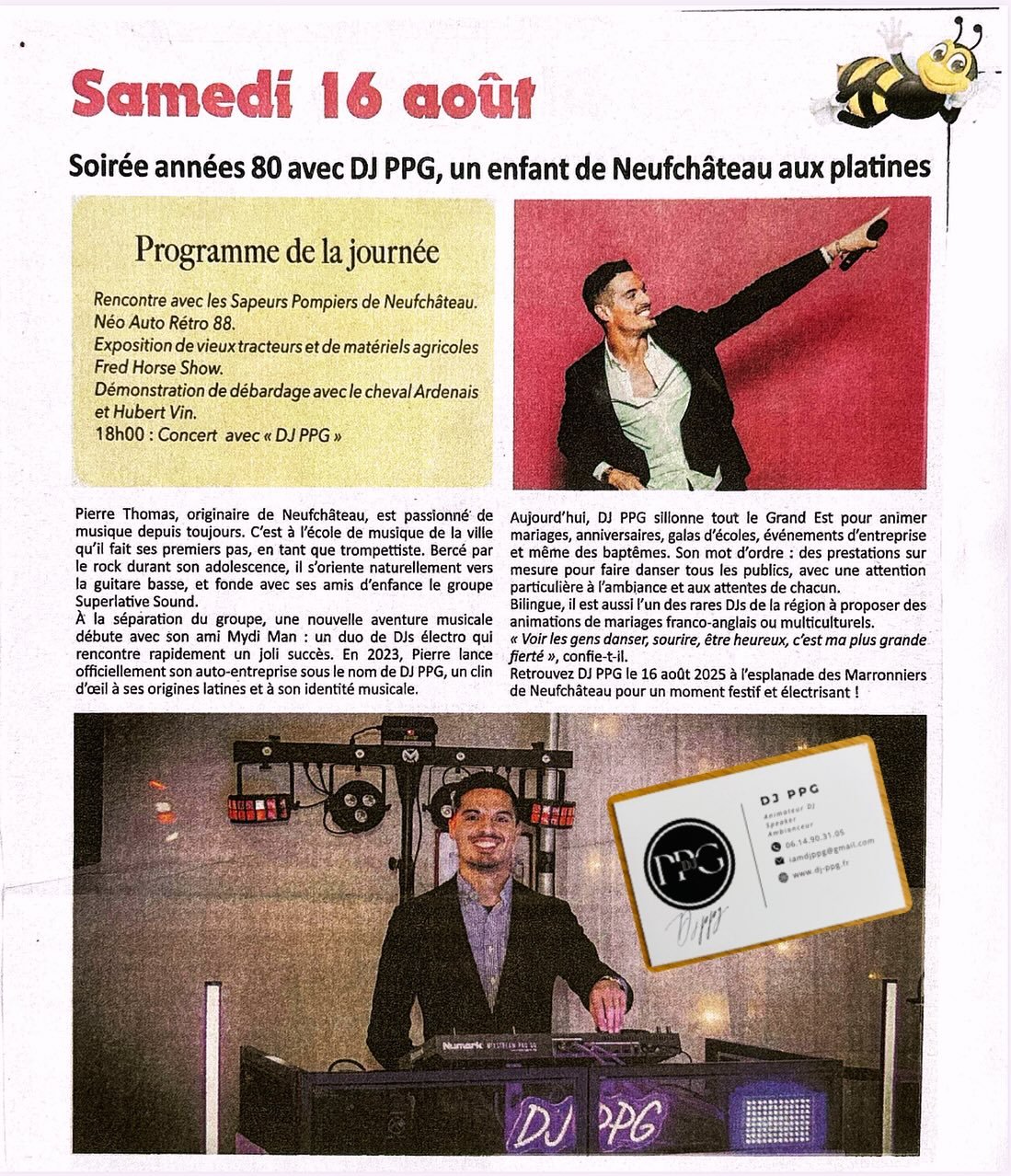 Quoi dit sur DJ PPG Incroyable très professionnel Pour mes 60 ans soirée inoubliable Ambiance un délire complet Je le recommande à 100% Tous mes invités ont adoré sa musique à l écoute. Encore merci Pierre ✌️